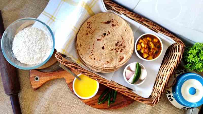 Soft chapatis, also known as rotis are Indian flatbreads made from wheat flour and served with a variety of accompaniments.