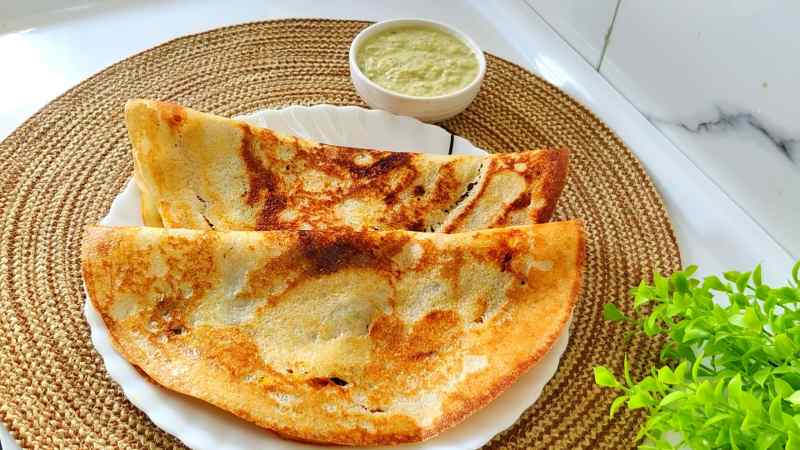 Kerala masala dosa is a crispy, savory crepe filled with a spicy potato mixture and served with chutney and sambar, popular in Kerala.
