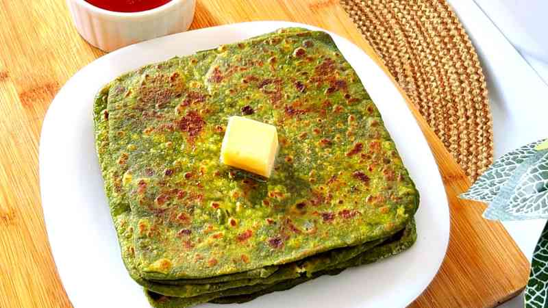 Palak Paneer Paratha is a nutritious and flavorful Indian flatbread stuffed with spinach and cottage cheese filling.